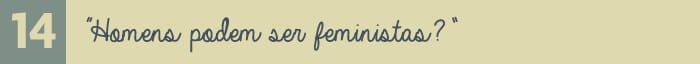 Sim. O pau não cai, se é esse o seu medo (aliás, pau nem é requisito para ser homem, sabia?). Inclusive, homens feministas fodem bem melhor (faz uma visitinha no tópico 10). Mas a primeira lição que o homem feminista aprende é: ouça as mulheres e respeite o seu espaço. Achar que pode dizer às mulheres como elas devem atuar no feminismo é um tanto machista. Quer ser feminista? Ótimo. Em vez de ficar chorando para ter espaço entre as feministas, você pode usar os espaços masculinos que você já frequenta para combater o machismo e ensinar a mais homens sobre como o feminismo é foda.