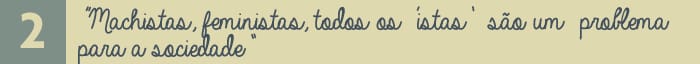 ‘Xô te dizer o que é sexista: se incomodar com um nome só porque ele faz referência a algo feminino. Porque temos todo umidioma contaminado pelo machismo, com palavras depreciativas exclusivas para mulheres e com o masculino como norma, mas isso não parece incomodar muita gente, né? Aí você vem dizer que o nome de um movimento de MULHERES pelo fim da opressão contra MULHERES não deveria se chamar feminismo?