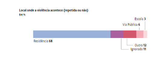 Essas agressões ocorrem mais em casa (68%), e têm o pai (12%), o padrasto (12%) ou outra pessoa conhecida (26%) da criança como abusador.