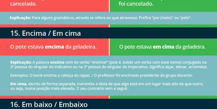 - “O pote estava encima da geladeira” ou “O pote estava em cima da geladeira”.