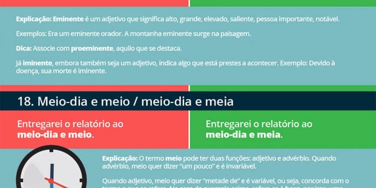 - “Entregarei o relatório ao meio-dia e meio” ou “Enrtegarei o relatório ao meio-dia e meia”.