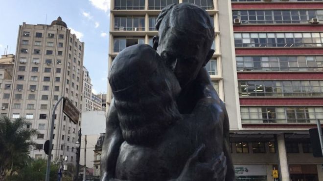 Mas é difícil saber o motivo olhando para ela agora, em uma tarde ensolarada de quinta-feira no centro de São Paulo. Não existe qualquer placa explicativa sobre aquele beijo. Ou o que ela enfrentou para estar ali: a censura, o discurso de um político indignado, abaixo-assinado de moradores, fúria e preconceito de parte da imprensa paulistana.