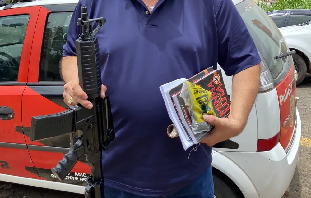 - Carta com suástica e réplica de fuzil foram apreendidas.