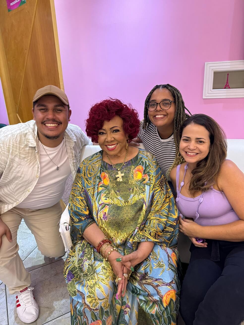 Alcione viu de perto os carros alegóricos que vem contando parte de sua trajetória desde o início ainda no Maranhão. Ela aproveitou para conversar com Guilherme Estevão e Annik Salmon, idealizadores do enredo, que escolheram contar sua história, narrada pelo amanhã, partindo da fé da cantora, pilar de sua vida.