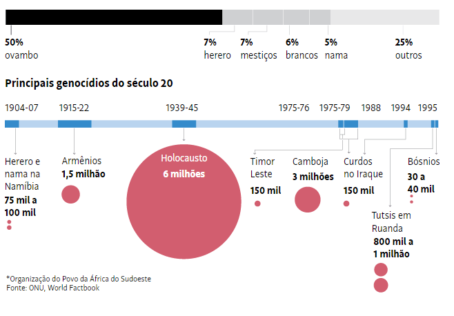 Entre 1904 e 1907, o então território da África do Sudoeste, atual Namíbia, foi palco do primeiro genocídio do século 20, praticado pelo mesmo país que na década de 1930 levaria o nazismo ao poder.