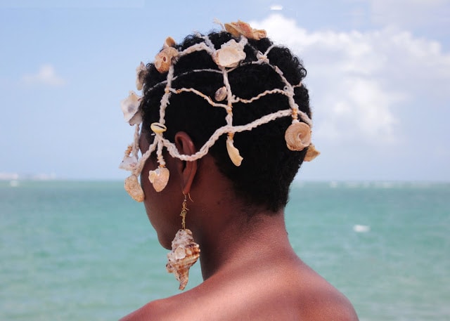 Sou essa água salgada, que sara feridas de corpos com peles subalternizadas. Sou esse mar poliglota, que grita segredos dos colonizadores, que escuta o clamor dos sequestrados, e que acolhe os negros desamparados; que reclamam da sede de ancestralidade. Meu corpo é transatlântico, intersecciono bairros, cidade, países e continentes. Minha etnia é diaspórica, sou uma banto-capixaba-brasileira. Sou negra, sou bixa, sou latina. Sou uma bixa-banto-brasileira. Meu corpo é aquático e fronteiriço, hábito a fronteira entre África e Brasil: o mar.