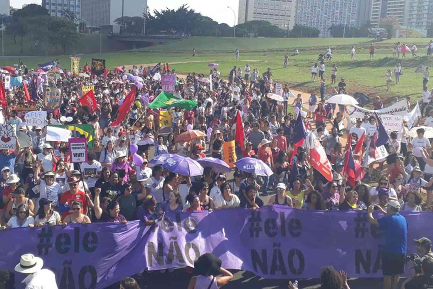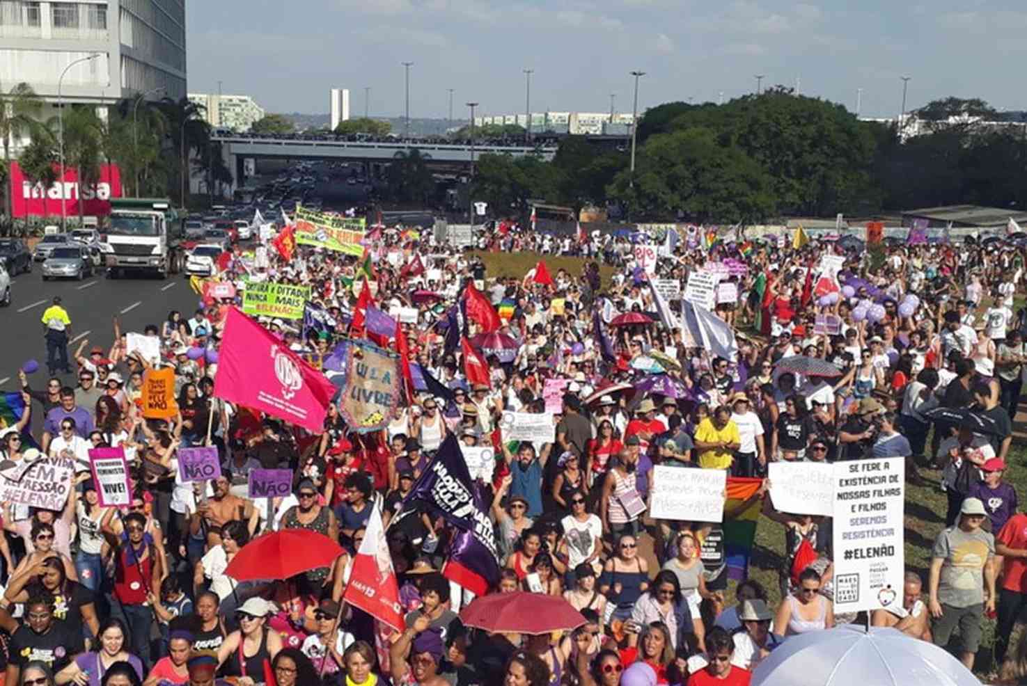 A concentração da manifestação das Mulheres Contra Bolsonaro em Brasília começou agitada na tarde deste sábado (29/9). Faixas e cartazes com a frase #ELENÃO marcam o protesto, que teve início por volta das 15h. A marcha é uma crítica às falas do candidato à Presidência Jair Bolsonaro (PSL), consideradas machistas. O cortejo tem início na Rodoviária do Plano Piloto e deve ser encerrado na Torre de TV.