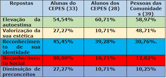d) os dados contidos no questionário revelaram que a maioria das pessoas assume o cabelo crespo por atitude própria, que contribui para elevar a autoestima.