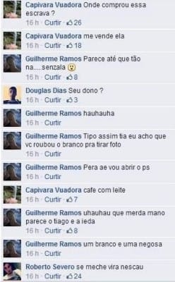 Uma delas deixou a seguinte mensagem: “onde o rapaz teria comprado a escrava”, postado por uma pessoa denominada “capivara vuadora”, que deve ser face (falso)
