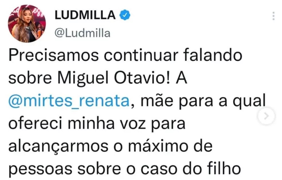 “Estou devastada em saber que mesmo com todas as provas e com a dor imensurável que essa mãe está sentindo, ainda não temos uma solução concreta por parte dos órgãos responsáveis. Isso é inadmissível! Quero deixar claro que usarei a minha voz quantas vezes for preciso e que continuaremos lutando por justiça”, escreveu Ludmilla.