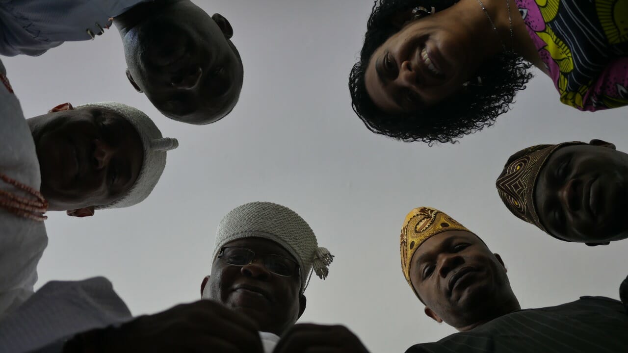 A comitiva é formada pelos reis Joseph Adebayo Adewole – Oba Ajero do Reino de Ijero ( Ekiti), Oba Kayode Adenekan Afolabi – Alapomu de Apomu (Osun), pelos babalawos Dr. White e Adekunle Olokooba, além do sr. Moses Olafare, chefe de imprensa do Palácio Real de Ifé.