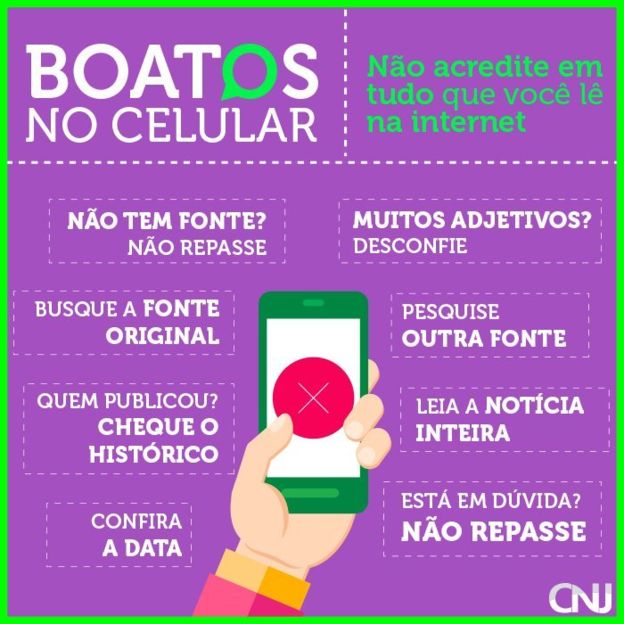Quando os boatos sobre Marielle estavam circulando, o Conselho Nacional de Justiça publicou no Facebook dicas de como identificar notícias falsas: “Não tem fonte? Não repasse”, “Pesquise outra fonte”, “Leia a notícia inteira”, “Está em dúvida? Não repasse”.