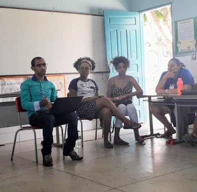 “Até agora nós já trabalhamos vários aspectos da história e da cultura africana. A primeira coisa que é preciso destacar para elas é que a África não é um país, mas um continente”, disse. “Já conseguimos desenvolver junto as professoras oficinas de confecção de bonecas negras, discutimos o filme Kiriku e a Feiticeira, onde pudemos destacar uma filosofia de origem africana que demonstra um menino com ideias humanitárias ao se preocupar com seu lugar de morada. Apresentamos também Mapeamento das Comunidades Rurais Negras e Quilombolas do Cariri, além de pontuar como pode ser trabalhado as temáticas referentes a história e cultura africana e afro-brasileira em várias áreas do conhecimento”, destacou ela ao receber Nicolau, Ana Karolyne e Júlia Simão.