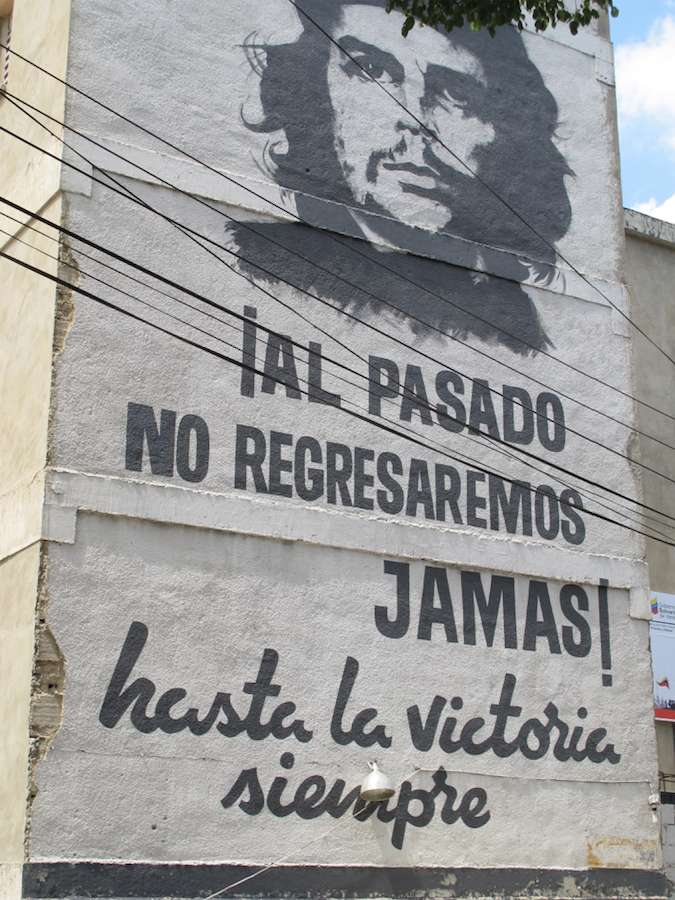 No bairro que fica bem atrás do Palácio Miraflores, em Caracas, o 23 de Enero, um dos bastiões do chavismo, eu vi pessoalmente numa parede a imagem de Che Guevara retratado como Cristo, de metralhadora na mão.