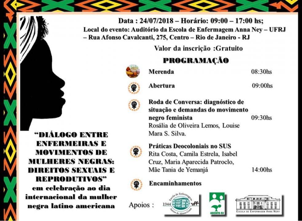 Programação e Inscrição Grátis (vagas limitadas) em: https://doity.com.br/dialogo-entre-enfermeira-e-movimento-de-mulheres-negras-sobre-direitos-sexuais-e-reprodutivos-/