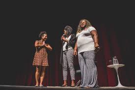 No camarim, minutos antes da entrada, aumentou-se o volume para Change is Gonna Come, na voz de Ottis Redding, clássica música por direitos civis que tem a cadência, persistência e aspirações revolucionárias próprias da trajetória, prática e fala de Djamila Ribeiro. Change is gonna come, yes it will. Quando ouço Djamila e outras mulheres negras reunidas à vontade com suas ideias e sentimentos, sinto a transformação como possível e à vista. Finda a música, a filósofa vai em direção à plateia, enquanto a mestre de cerimônia traz uma pequena apresentação sua e anuncia seu nome, para, então, a febre toma conta do lugar, que vem abaixo com a entrada dessa grande mulher, ovacionada como merece ser.