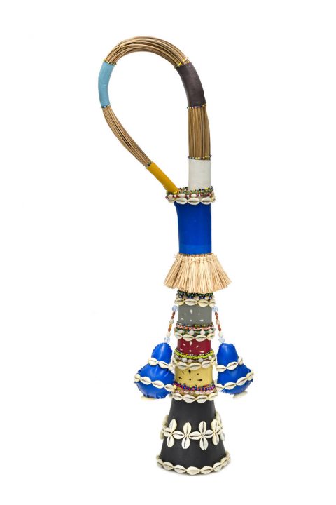 Ibiri com duas cabaças, déc. 1980 – Nervura de palmeira, couro, búzios e palha da costa – 69 x 22 x 12 cm Crédito das fotos: Andrew Kemp / Galeria Almeida e Dale