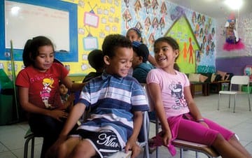 Usa também a diversidade de cores, culturas e sonhos da periferia com que aprende sempre. Disso tudo extrai a Pedagogia do Arco-Íris, que se dá em sete estágios, cada um representando uma cor. A base é o desenvolvimento da autonomia de pensamento e ação a partir de quatro pilares da educação: ser (espiritualidade), conhecer (ciências), saber (filosofia) e fazer (arte). “Nossos educadores são convidados a usar os cinco sentidos, principalmente a audição. É preciso escutar esses meninos para depois tentar uma mediação.” O desafio é como tornar a escola interessante, “principalmente para crianças que já não sonham, que cedo precisam trabalhar, ganhar dinheiro, engravidam. É lembrá-las que já tiveram sonhos”.