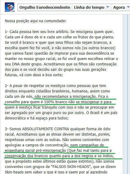 A página “Orgulho de Ser Branco” se esconde sob a justificativa de divulgar características e qualidades da “raça branca”. Mas basta um olhar atento nos posts e comentários para constatar a ideologia racista disfarçada de revisionismo histórico e com doses pesadas de pseudociência. Navegar pela página é como voltar aos tempos em que as ideias do médico Nina Rodrigues sobre a inferioridade dos não brancos eram levadas a sério.