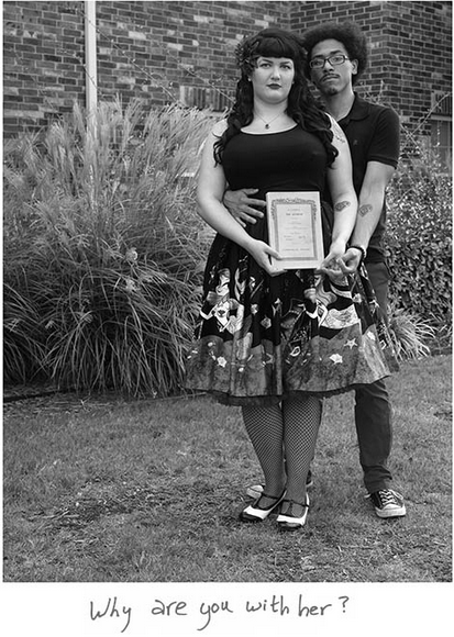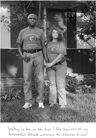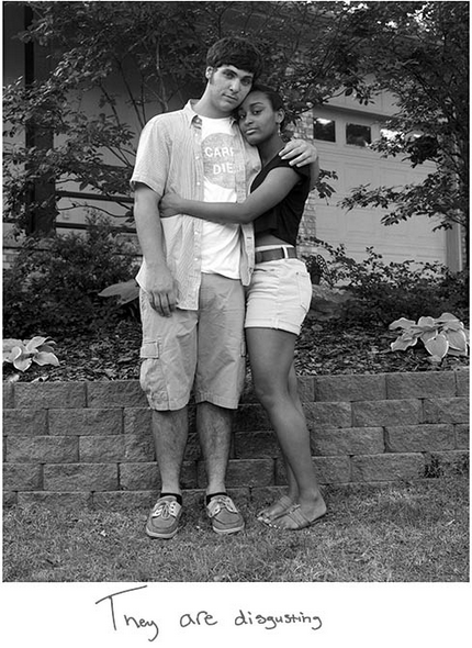 Ver um casal de diferentes etnias não deveria ser um tabu, mas ainda hoje essas pessoas são alvo de muito preconceito. Pensando nisso, a fotógrafa norte-americana Donna Pinckley criou uma série fotográfica, intitulada “Sticks and Stones” (“Gravetos e Pedras”), em que casais inter-raciais revelam os insultos que ouvem diariamente.