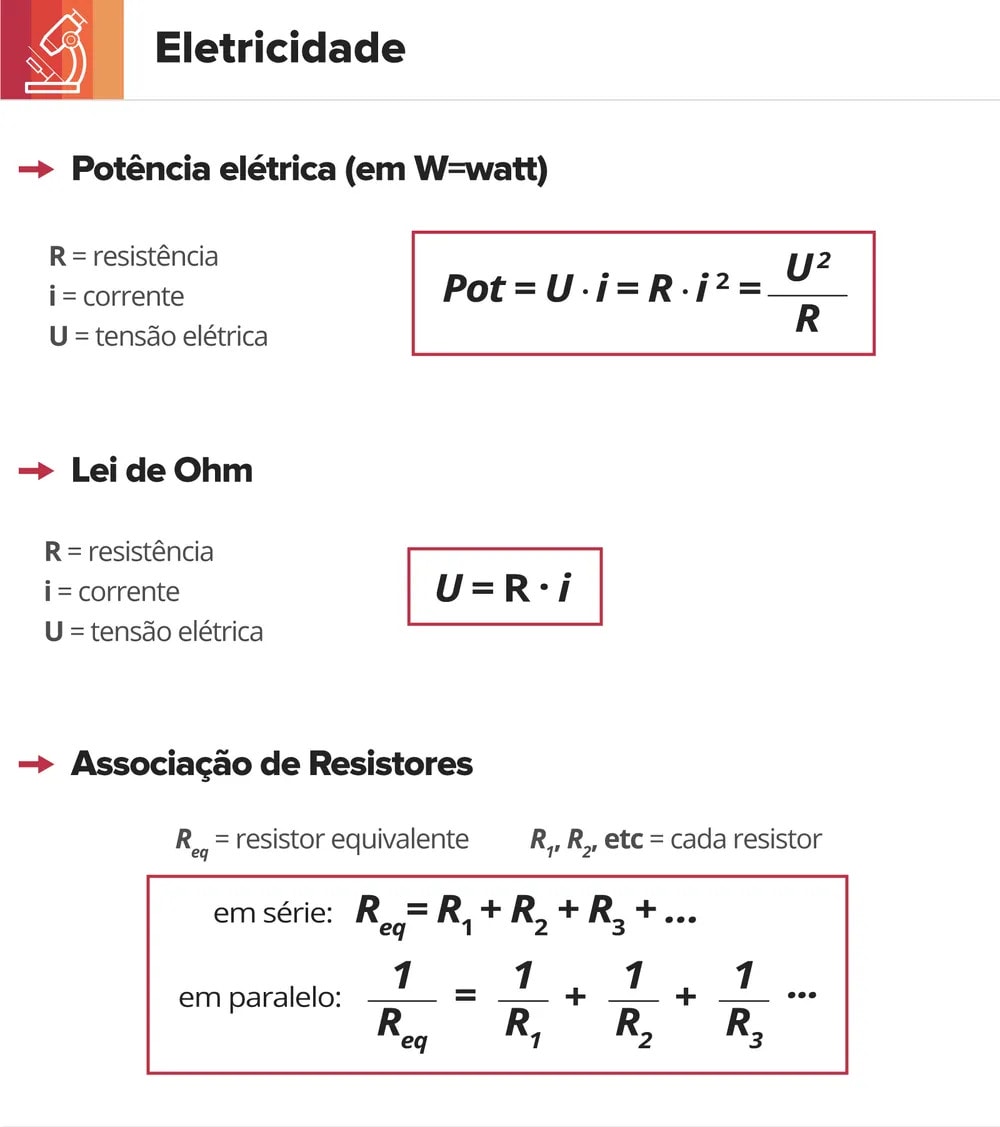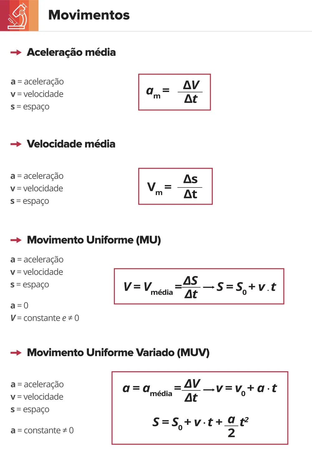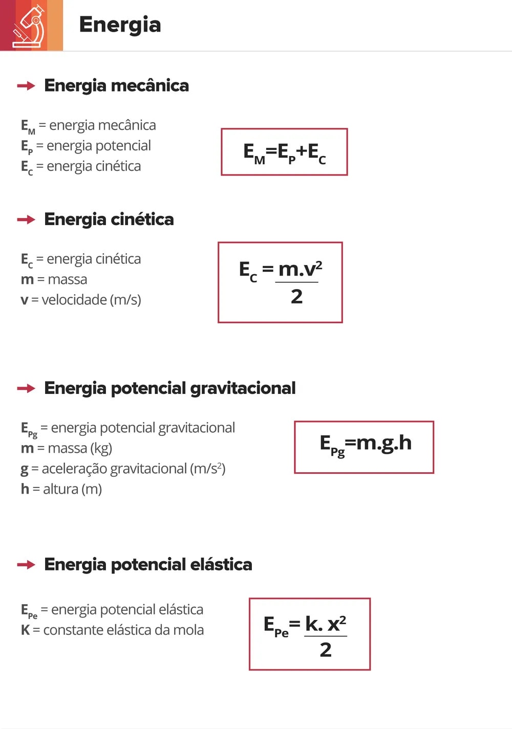 A prova de ciências da natureza do Exame Nacional do Ensino Médio (Enem) 2022, que cobra conhecimentos em química, física e biologia, será no próximo domingo (20). Confira abaixo uma lista com algumas das principais fórmulas de física que podem ser úteis na revisão do conteúdo.