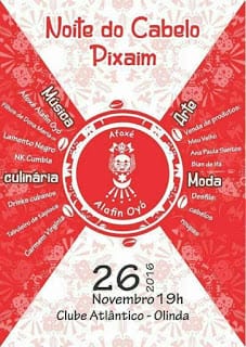 Como parte de um movimento que teve início na década 90 amanhã,sábado, 26 de Novembro, o Clube Atlântico de Olinda, recebe a edição anual da Noite do Cabelo Pixaim. Esse é mais um momento de exaltação à estética, beleza e cultura negra. É mais um dia de resistência. Prepare-se, não esconda seu cabelo, solte sua “juba”, explore a criatividade dos cortes, trançados e penteados afro e vá!!!