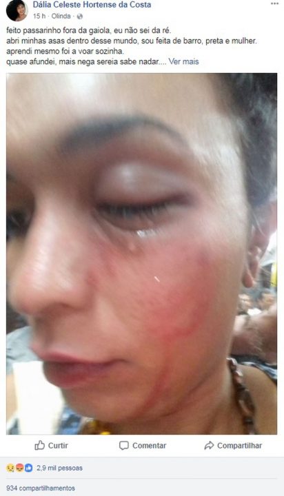 “Fazia tempo que eu não chorava, e hoje eu chorei. Chorei com vergonha de chegar em casa e olhar para minha mãe com um rosto que não é meu. Mulher negra, trans, feminista e periférica. Humilhada, agredida e assediada”, finalizou Dália na postagem.
