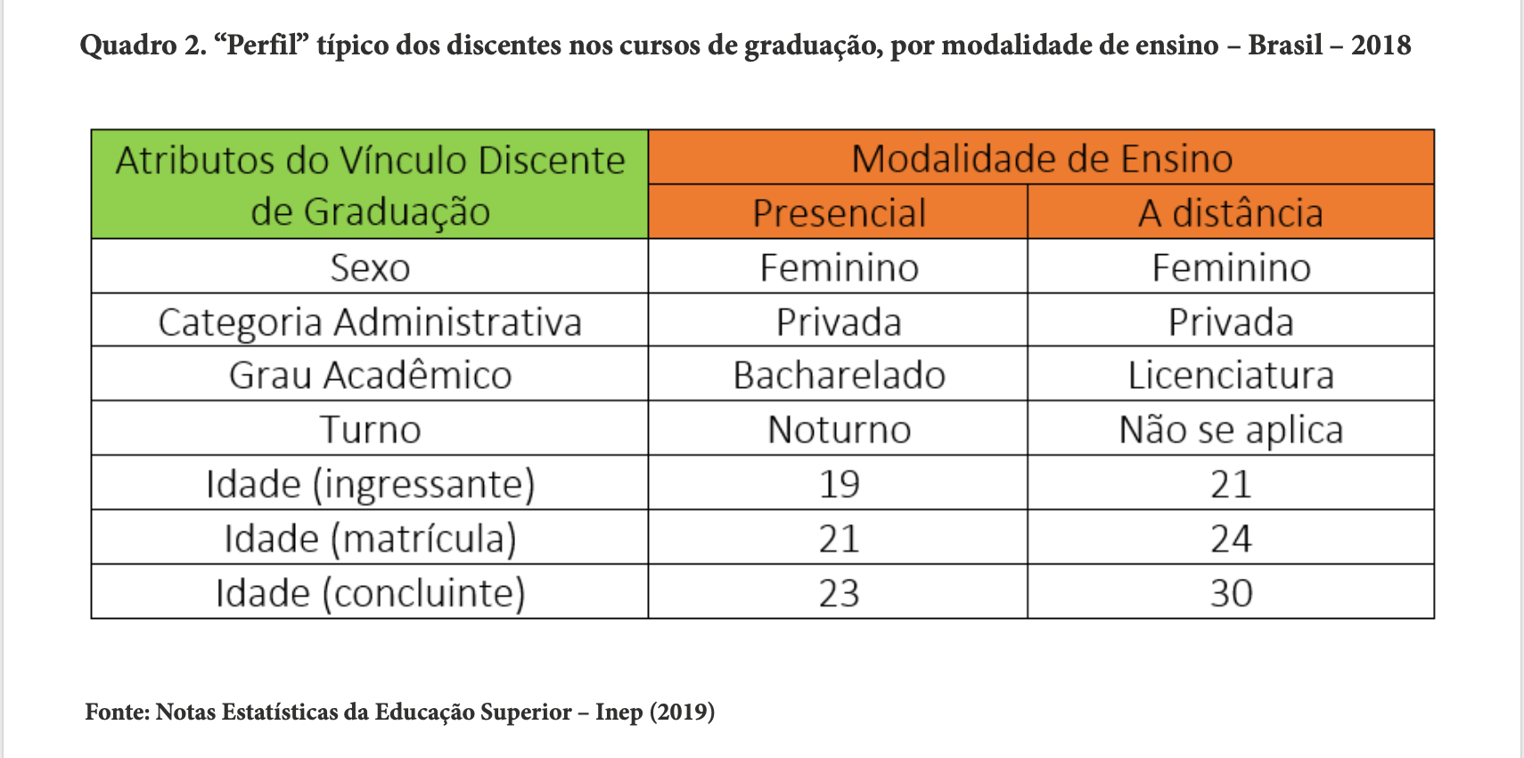 BRASIL. Instituto Nacional de Estudos e Pesquisas Educacionais Anísio Teixeira (Inep). Censo da Educação Superior 2018: notas estatísticas. Brasília, 2019. Disponível em: http://portal.inep.gov.br/informacao-da-publicacao/-/asset_publisher/6JYIsGMAMkW1/document/id/6734509. Acesso em: 13 nov. 2019.