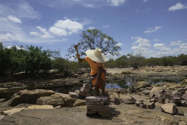 “Quando comecei a fotografar aquela realidade, meu primeiro sentimento foi achar aquilo tudo uma exploração. Foi quando uma das senhoras mais velhas da pedreira me disse: ‘Moço, meu pai foi cortador de pedras e eu faço isso desde menina. Agradeço a Deus todos os dias pela pedra. Foi com a pedra que criei meus filhos. É com a pedra que hoje eles criam meus netos’”, diz Alexandre, lembrando que se sentiu obrigado a contar aquela história sem clichês, enfatizando a dignidade daquelas pessoas que sobrevivem do trabalho pesado, numa região que pouco chove.