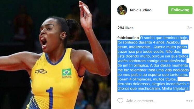Além de Fabiana, outras jogadoras da seleção brasileira feminina de vôlei postaram mensagens no Instagram,