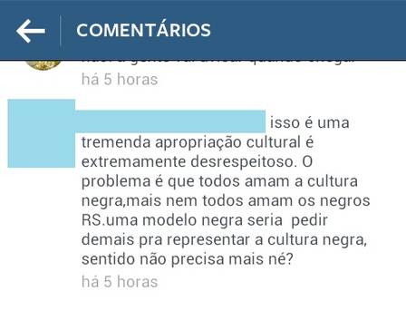 “Querem usar estampa africana usando cultura preta e tem nem coragem de colocar alguém que realmente represente isso…”, questionou uma jovem. Uma outra complementa: “verdade Farm, faltou minas negras na coleção de vocês”. Outra seguidora vai além: “O problema é que todos amam a cultura negra, mas nem todos amam os negros. Uma modelo negra seria pedir demais pra representar a cultura negra, sentido não precisa mais né?”.
