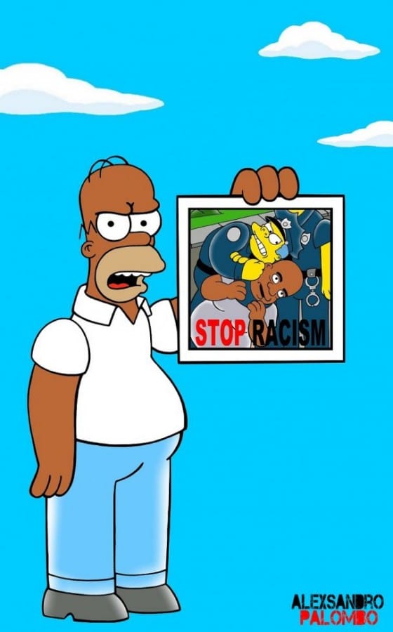 Celebram-se esta quarta-feira os 25 anos da série ‘The Simpsons’. Foi com ela que nasceu Homer, Marge, Lisa, Bart e Maggie. O artista Alexsandro Palombo aproveitou esta data para mostrar a sua coleção de quadros contra o racismo.