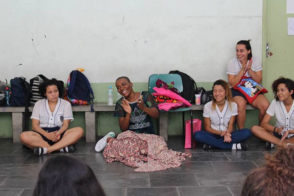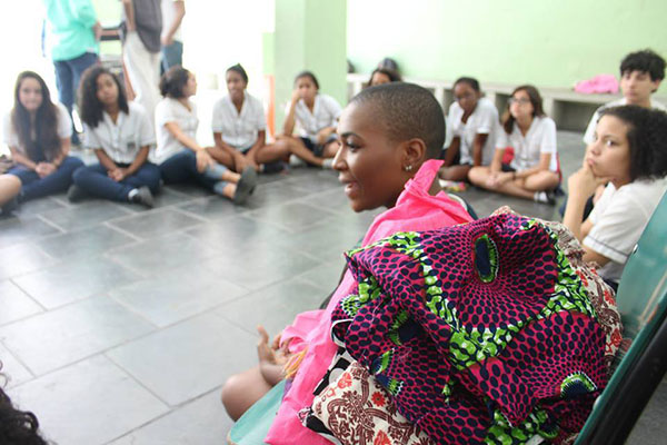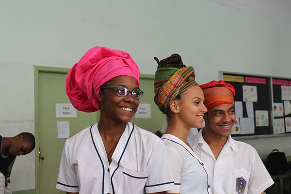 Estive lá na semana passada, quinta-feira 17/09, por indicação de Iara Cassano. Na primeira mesa estava Pedro Rajão, produtor cultural e diretor do documentário Anikulapo. No intervalo entre uma mesa e outra, compartilhei com xs estudantes uma oficina de turbantes e ali conversamos muito sobre apropriação cultural, autoestima e belezas. Foi lindo ver o interesse e atenção dx meninxs empenhadxs a descobrirem os outros “eus”. Como é sensível elxs se tocarem e se permitirem tocar pelo outro, se admirarem… e admirarem o outro. Estavam radiantes. Num segundo momento foi chegada a hora da mesa onde palestramos eu e a antropóloga Nathalia Oliveira.