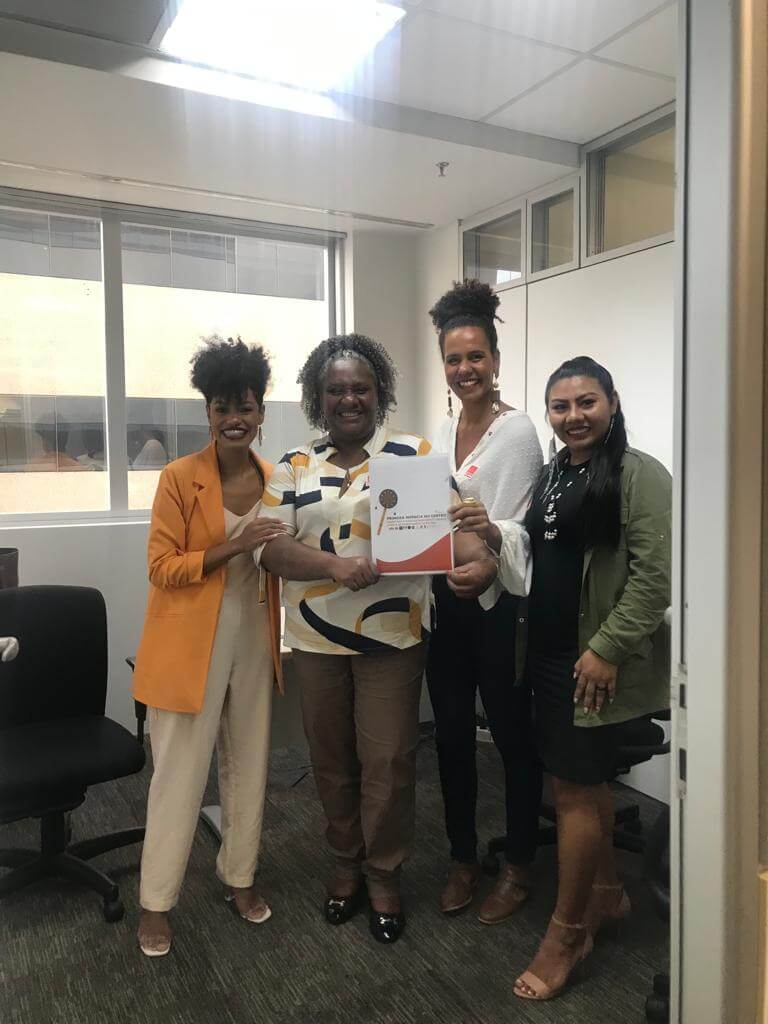 Nesta nova etapa de incidências para o fortalecimento do debate sobre racismo e primeira infância, o Grupo Articulador foi representado por Ana Paula Matias e Damiana Neto da AME Ação de Mulheres pela Equidade/DF; Letícia Leobet e Suelaine Carneiro de Geledés Instituto da Mulher Negra/SP; Maria Malcher do Centro de Estudos e Defesa do Negro do Pará-CEDENPA/PA; Monica Sacramento de Criola/RJ; Rivanda Lina do Instituto de Mulheres Negras do Amapá-IMENA e Rosijane Tukano da Rede de Mulheres Indígenas do Estado do Amazonas Makira E’ta.