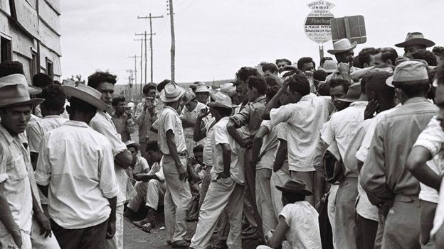 Fila de candangos, os operários migrantes que ergueram Brasília; cidade foi construída em menos de quatro anos (ARQUIVO PÚBLICO DO DISTRITO FEDERAL)