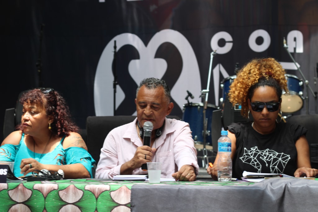 Na segunda mesa, “A conjuntura nacional, internacional e resistência diaspórica”, foram apresentadas diferentes facetas da violação dos direitos da população negra, a partir de ativistas de cinco país de África e da diáspora . A equatoriana Antônia Jesus Hurtado apresentou traços do que vivenciam em seu país, muito parecidos com o que observamos no Brasil. “O Estado não respeita nossos direitos, é como se fossemos invisíveis. Sobretudo, seguimos compartilhando o conhecimento de nosso povo que é nossa maior riqueza”. Yannia Sofía Garzon Valencia, da Colômbia, resgatou momentos conturbados durante os protestos contra a desigualdade social e racial e encerrou sua participação com as palavras de ordem que se ouve nas ruas de Bogotá “O território é vida e vida não se vende, se ama e se defende”.