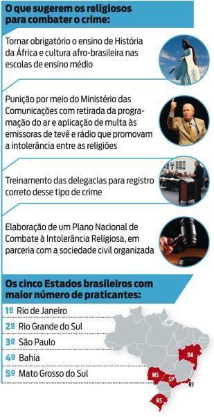 Pesquisa recente da Fundação Getulio Vargas aponta que 0,35% da população declarou ser praticante de religiões afro-brasileiras. O teólogo Jayro de Jesus acredita que é muito mais e até estima um crescimento de quase 70% no número de terreiros nos últimos 30 anos. “Acho que as pessoas estão sendo segregadas e, por isso, não tiveram a altivez de se autodeclarar nos censos”, afirma. Ele faz parte do grupo que está discutindo o mapeamento dos terreiros existentes no Brasil, com apoio da Secretaria de Políticas de Promoção da Igualdade Racial. A expectativa é de que os trabalhos comecem no início do próximo ano e durem até 2013. Em um levantamento feito em 2011, foram localizados até agora, somente na região metropolitana do Rio, 847 terreiros. Com os dados obtidos, o próximo passo será a implementação de um Plano Nacional de Proteção Religiosa. Para impedir a propagação de conflitos movidos pela religião, é preciso agir rápido.