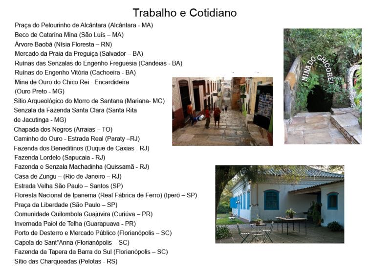 Demos prioridade às evidências documentais, escritas ou orais, da presença histórica e cultural dos africanos, com o objetivo de centrar o foco na ação e no legado dos recém-chegados. Por outro lado, sabemos que a lista seria interminável se tivéssemos optado por reunir os Lugares de Memória dos descendentes de africanos no Brasil. O inventário é sobre os locais onde é possível lembrar a chegada dos africanos ou identificar as marcas de sua presença e intervenção.