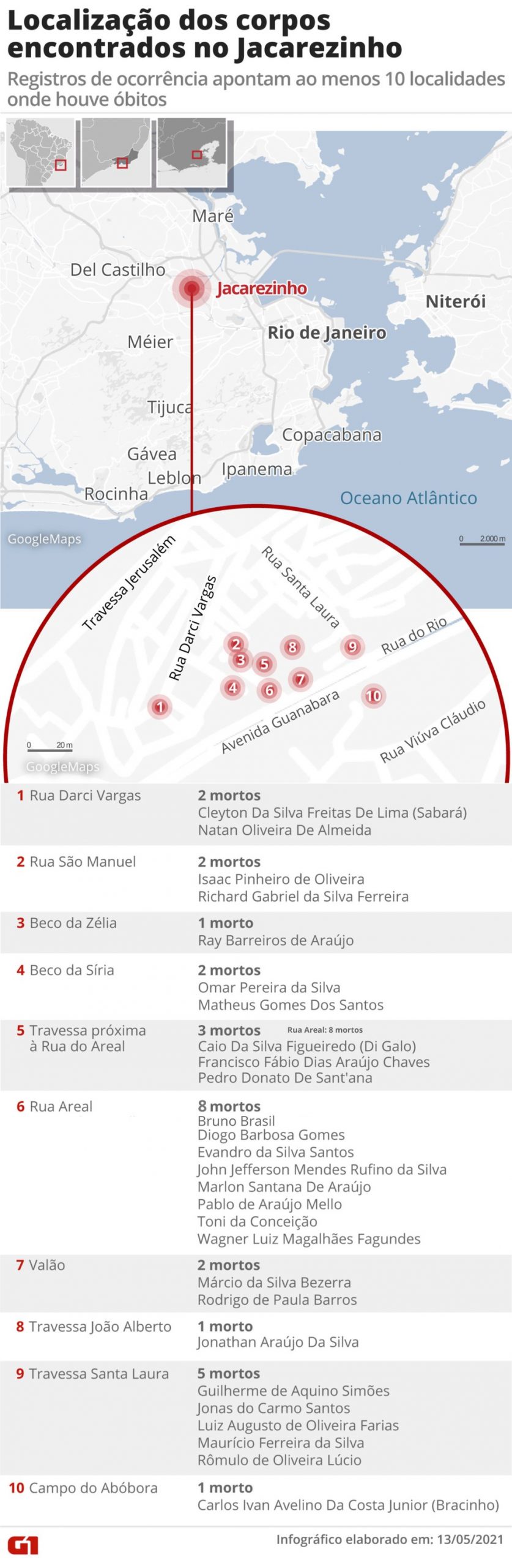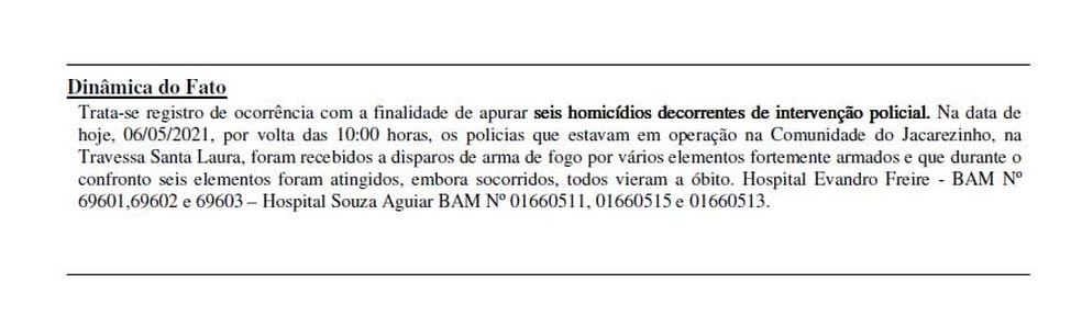 Em um relatório de inteligência , a Polícia Civil informou que 25 dos 27 mortos no Jacarezinho tinham antecedentes criminais. O documento deu detalhes sobre as acusações feitas aos 27 mortos. (Veja abaixo)