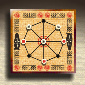 Este jogo se assemelha as estratégias utilizadas em nosso “jogo da velha”, mas neste tenta-se impedir que o adversário alinhe suas peças em uma das diagonais do tabuleiro octagonal (oito lados).