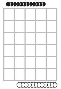 Usa-se um tabuleiro de 30 casas com 24 peças, 12 de cada cor ou tonalidade.