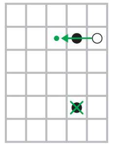 A peça que captura deve sair da casa adjacente à peça capturada e chegar, em linha reta, na outra casa adjacente que deve se encontrar vazia.