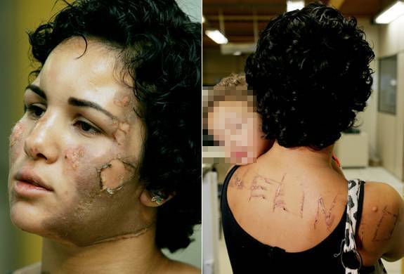 “Pensei que ia morrer. Fui marcada com um gado e tratada como um animal. Ele falou que eu ia ficar bem feia para não ficar com mais ninguém na minha vida. Falou que se eu o entregasse à polícia ele mataria meus outros dois filhos, de 7 e 5 anos, que são de outro relacionamento. Se ele for liberado, não sei o que será da minha vida. Tenho medo que ele volte e mate todo mundo”, disse ela na 16ª DP (Barra da Tijuca), onde o caso de tortura, ameaça e tentativa de homicídio foi registrado. O agressor alegou que o motivo seria ciúmes. Segundo Paula, o casal estava separado há um ano.