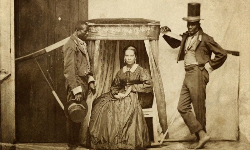 Senhora na liteira (uma espécie de “cadeira portátil”) com dois escravos, Bahia, 1860 (Acervo Instituto Moreira Salles).