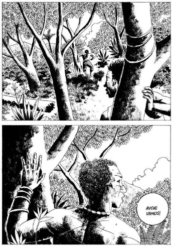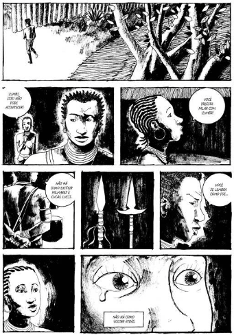 Ao longo de quase 200 páginas, desenhadas em preto e branco e narradas com poucos diálogos, D’Salete ficcionaliza histórias encontradas em relatos antigos, tentando imaginar a perspectiva do escravizado frente aos desmandos do período colonial.