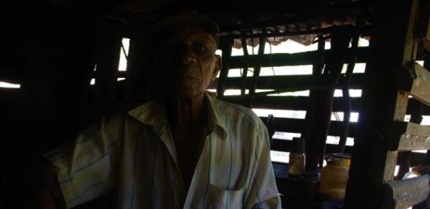 Sozinho numa casa feita com placas de metal, madeira compensada e lonas plásticas, o trabalhador rural José Isédio Dias, 86, pede socorro diante da situação dos quilombolas.