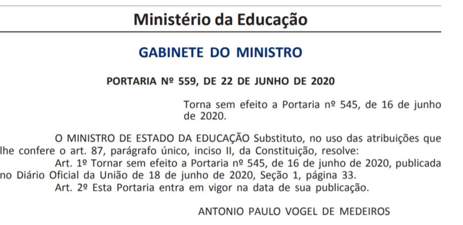 O Ministério da Educação revogou a portaria assinada pelo ex-ministro Abraham Weintraub no dia 18 de junho que acabava com normas que estimulavam cotas voltadas para negros, indígenas e pessoas com deficiência em cursos de pós-graduação no País. O ato foi publicado no Diário Oficial da União desta terça-feira, 23. A medida tomada por Weintraub recebeu críticas do Congresso e foi alvo de despacho do ministro do Supremo Tribunal Federal, Gilmar Mendes, que deu prazo de 48 horas para a Advocacia Geral da União se manifestar sobre a ação nesta segunda-feira, 22.