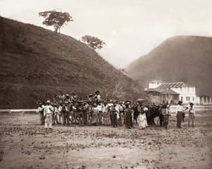Trabalhadoras com os filhos e demais lavradores partem para a colheita de café no sul do estado do Rio, em 1885: maternidade vivenciada de forma dramática