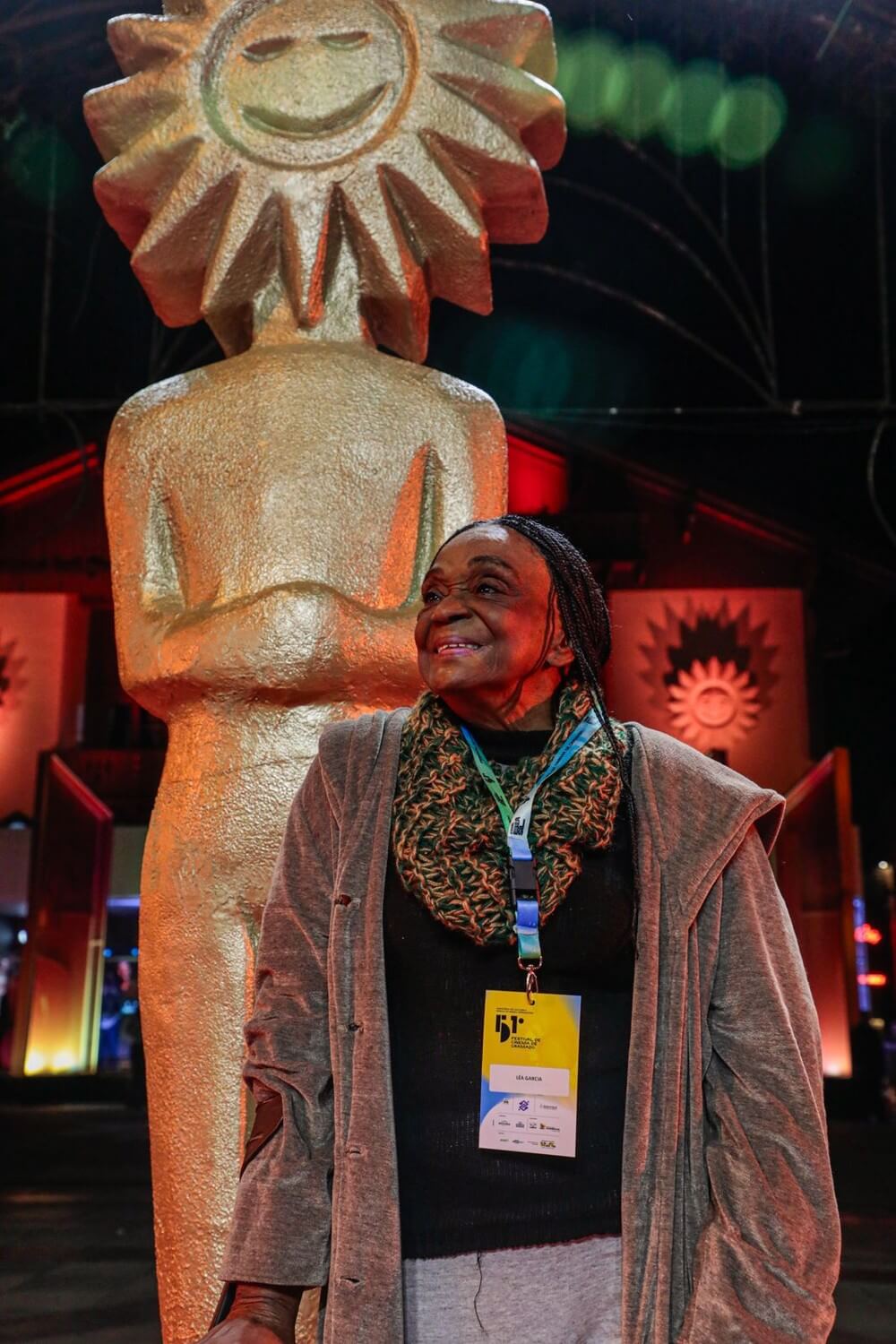 Léa estava circulando pelo Festival, que começou no último sábado, todos os dias. Chegou a posar sorridente na frente do troféu Kikito.
