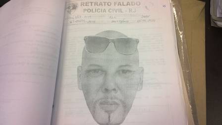 Retrato falado: testemunhas descreveram o assassino como um homem de cabelos raspados, com mais de 40 anos, que usava cavanhaque e óculos na testa Foto: Divulgação/Polícia Civil